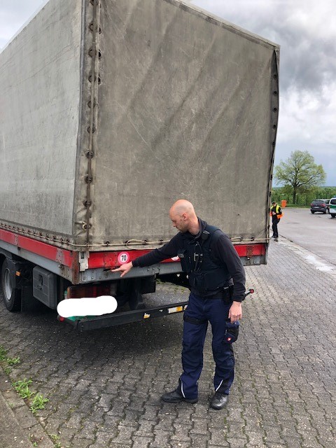 Der Fahrer erhielt eine OWI-Anzeige und ein Mängelbericht. Die Weiterfahrt wurde bis zum Wechsel des Reifens untersagt. Anschließend wurde die Fahrt nur bis zur nächstgelegenen Werkstatt gestattet. Bei einem rumänischen LKW konnten ebenfalls mehrere technische Mängel festgestellt werden so, dass das Fahrzeug zur Prüfstelle gelotst werden musste. Die Prüfstelle stellte ebenfalls diverse Mängel fest, stufte das Fahrzeug jedoch nicht als verkehrsunsicher ein. Der Fahrer erhielt eine Kontrollaufforderung zur Beseitigung der Mängel und durfte seine Fahrt fortsetzen. Auch ein Reisebus wurde kontrolliert. Es wurden nur geringe Mängel festgestellt so, dass der Fahrer und seine Fahrgäste nach einer kurzen Pause die Fahrt fortsetzen konnten. Des Weiteren wurden vorwiegend Verstöße gegen die Sozialvorschriften festgestellt und geahndet. Der Zoll führte Kontrollen in eigener Zuständigkeit durch. Bei fachübergreifenden Feststellungen unterstützten sich die unterschiedlichen Einheiten gegenseitig.
