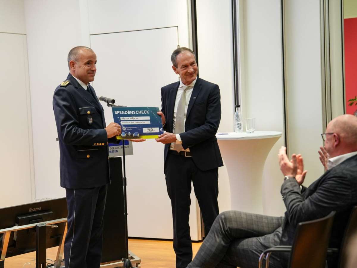 Wanderausstellung "Der Mensch dahinter" eröffnet - Einsatzkräfte im Porträt, Darmstadt - Am Dienstagabend (12.11.2024) eröffneten Polizeipräsident Björn Gutzeit und der Geschäftsführer der Arbeitgeberverbände im Haus der Wirtschaft Südhessen, Dirk Widuch, gemeinsam die Wanderausstellung "Der Mensch dahinter", um damit ein weiteres gemeinsames Zeichen für Respekt und Toleranz gegenüber der Blaulichtfamilie zu setzen.