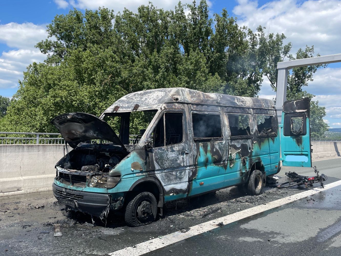 Vollbrand eines Sprinters auf der A643, Schaden von 12.000 Euro, Heidesheim - Am 19.05.2025 befuhr gegen 13:00 Uhr ein Ehepaar mit ihrem Sprinter die BAB643 in Fahrtrichtung Bingen. Kurz vor der Anschlussstelle Mainz-Mombach geriet das Dach des Fahrzeugs aufgrund eines technischen Defekts in Brand. Das Fahrzeug konnte durch den Fahrer sicher auf dem Standstreifen abgestellt werden. Aufgrund der Löscharbeiten musste die Fahrbahn teilweise voll gesperrt werden, was für einen erheblichen Rückstau in Richtung Hessen sorgte.