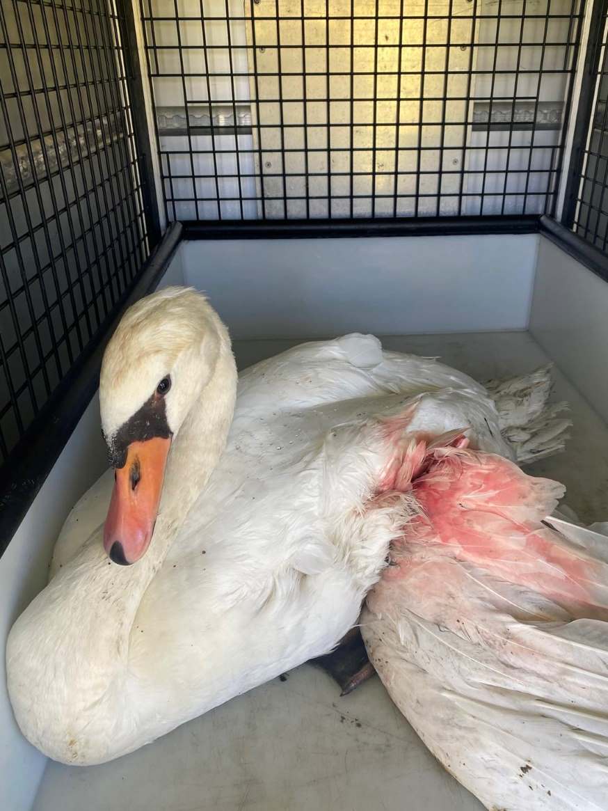 Feuerwehr rettet verletzten Schwan Mainz- Die Feuerwehr Mainz rettete am Freitagnachmittag einen verletzten Schwan in Mainz-Laubenheim. Dieser flog im Vorfeld gegen einen Strommast. Ein Biotoppflegeteam beobachtete den Unfall des Schwans und meldete das verletzte Tier der Feuerwehr in der Nähe des Riedwegs.
