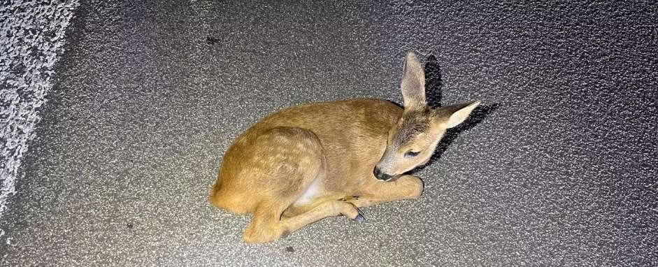 Schlafendes Rehkitz von A61 gerettet, Zotzenheim (ots) - Einen Einsatz mit vermeintlich traurigem Anlass, aber erfreulichem Ausgang erlebten Einsatzkräfte der Polizeiautobahnstation Gau-Bickelheim in der Nacht auf Montag. Gegen 2 Uhr wurde der Autobahnpolizei ein angeblich angefahrenes und leblos auf dem Standstreifen der A61 in Fahrtrichtung Koblenz liegendes Reh gemeldet.