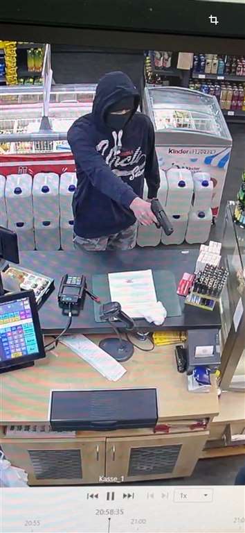 Am Freitagabend kurz vor 21 Uhr betritt ein Mann kurz vor Ladenschluss den Verkaufsraum einer Tankstelle in der Binger Straße. Als der Mann an der Kasse gegenüber einer Mitarbeiterin steht, zieht er eine schwarze Pistole aus der Tasche seines Kapuzenpullovers und hält sie drohend in Richtung des Kopfes der Frau.