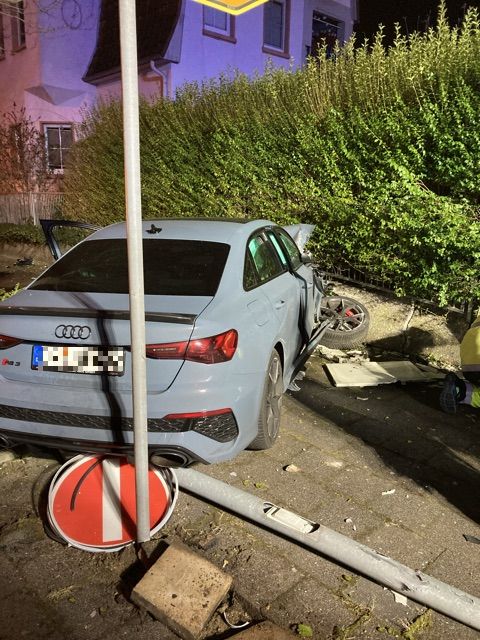 Audi prallt unter anderem gegen Stromkasten und Mauer: Mutmaßlicher Fahrer stand unter Alkoholeinfluss, Dreieich, Sprendlingen - Zwei Verletzte und ein Schaden von über 100.000 Euro - das ist die Bilanz eines Verkehrsunfalls, der sich am frühen Donnerstagmorgen in der Eisenbahnstraße zugetragen hat. Dort war eine Audi-Limousine vermutlich aufgrund nicht angepasster Geschwindigkeit unter anderem gegen einen Stromverteilerkasten und eine Mauer am Straßenrand geprallt.