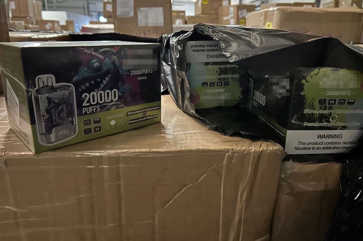 Große Sicherstellungen von Tabakwaren - erneut Millionenschaden aufgedeckt, In gleich zwei voneinander unabhängigen Ermittlungsverfahren schlugen Frankfurter Zollfahnderinnen und Zollfahnder am 09.01.2025 in Friedberg und Saarlouis zu und beschlagnahmten umfangreiche Beweismittel. Palettenweise illegale E-Zigaretten sichergestellt.