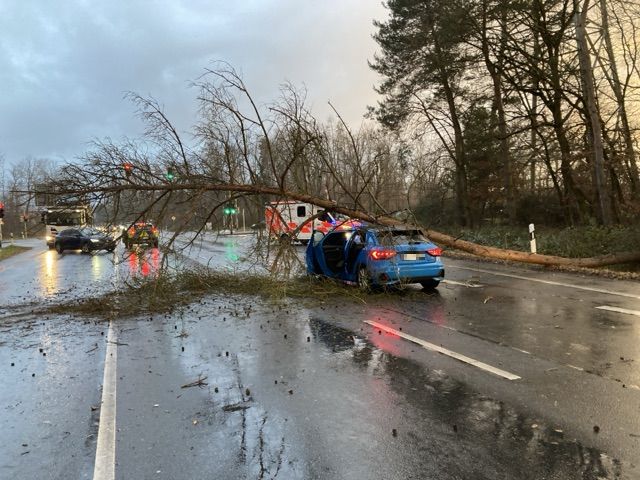 Umgefallene Bäume und Verkehrsschilder: Mehrere Sturm-Einsätze für Polizei, Schreckmoment für Autofahrerin bei Dietzenbach, Südosthessen - Sturmböen haben am Montagnachmittag für einige Einsätze der Polizei gesorgt und auch zu Sachschaden geführt. Die Beamten des Polizeipräsidiums Südosthessen zählten im gesamten Bereich 15 Einsätze, bei denen nach bisherigen Erkenntnissen glücklicherweise keine Personen zu Schaden kamen.
